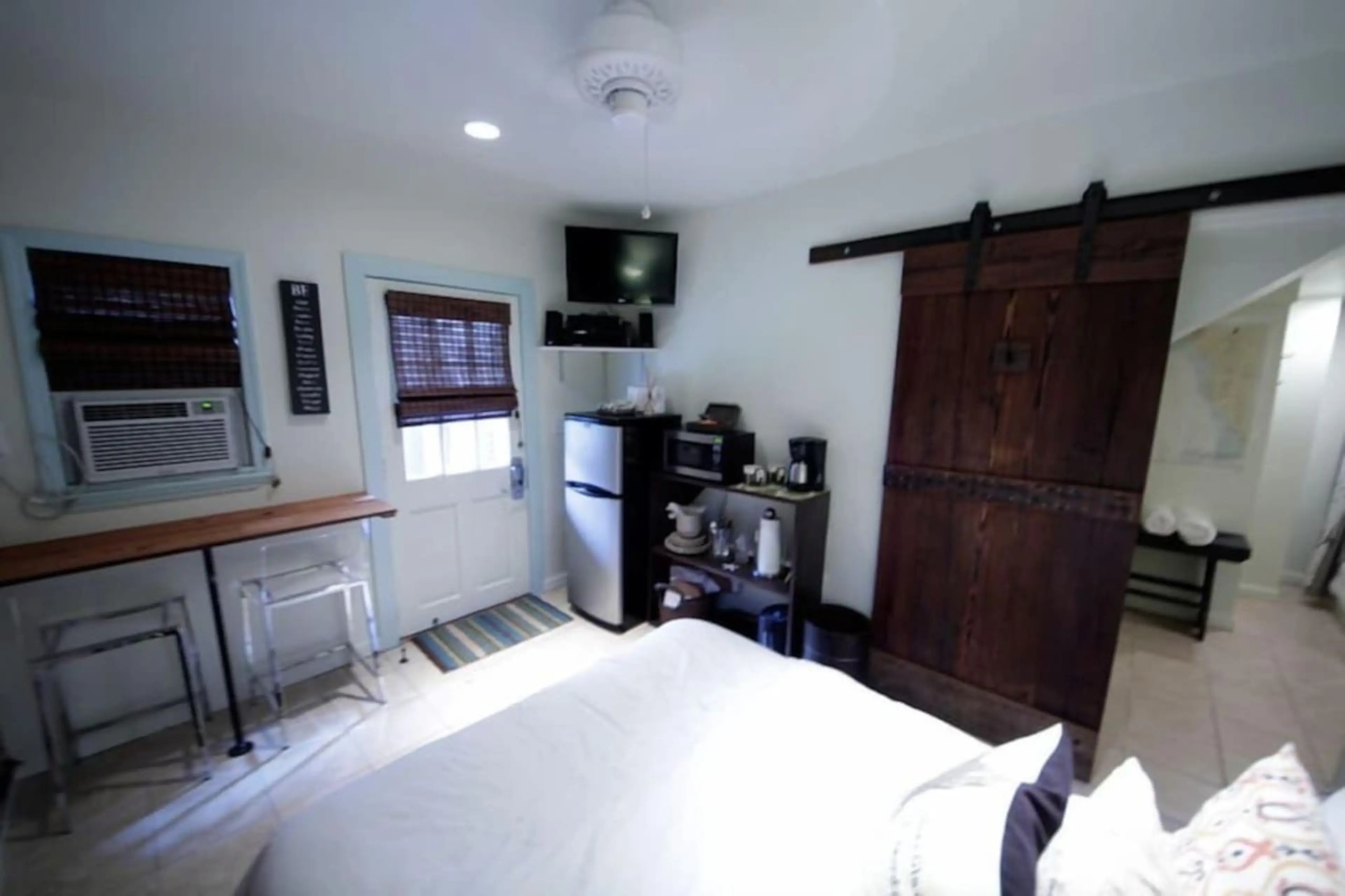 This studio is a great option for 1 or 2 people wanting to visit Folly Beach, and have a little more solitude than a hotel provides. Located 1 block from the beach, and one block from Center Street - the heart of downtown Folly - the unit features a queen bed, a HD flatscreen TV with Blu-ray play...